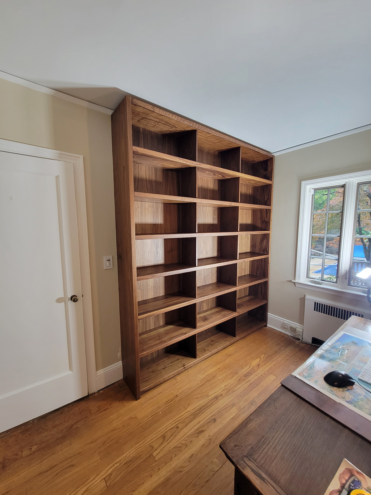 One of the defining aspects of quality millwork in older homes is scribing. Shelves, verticals, and bases are carefully fitted to walls and floors to eliminate gaps and maintain visual continuity. This process requires both experience and patience, particularly when working with plaster walls and historic moldings.